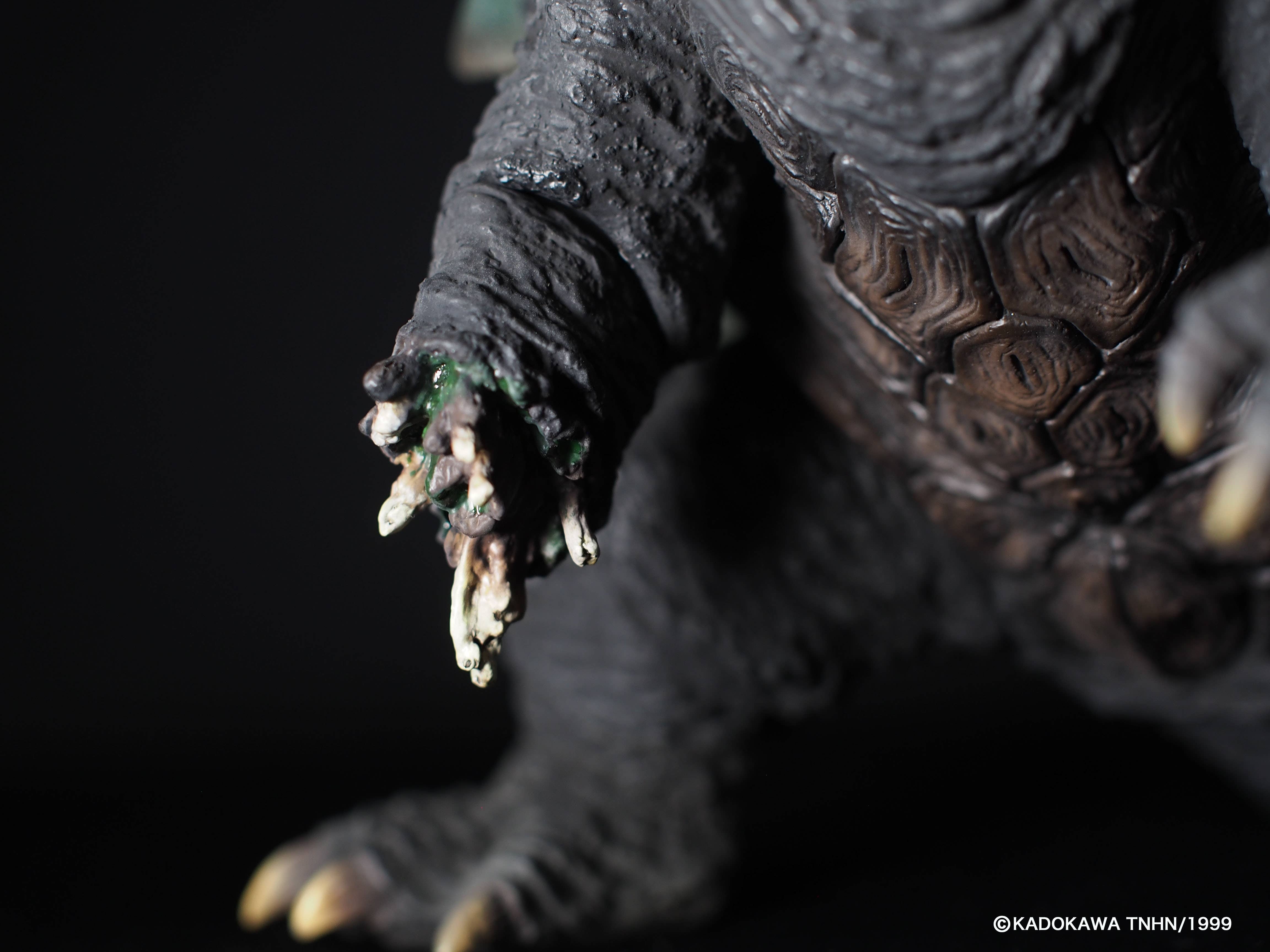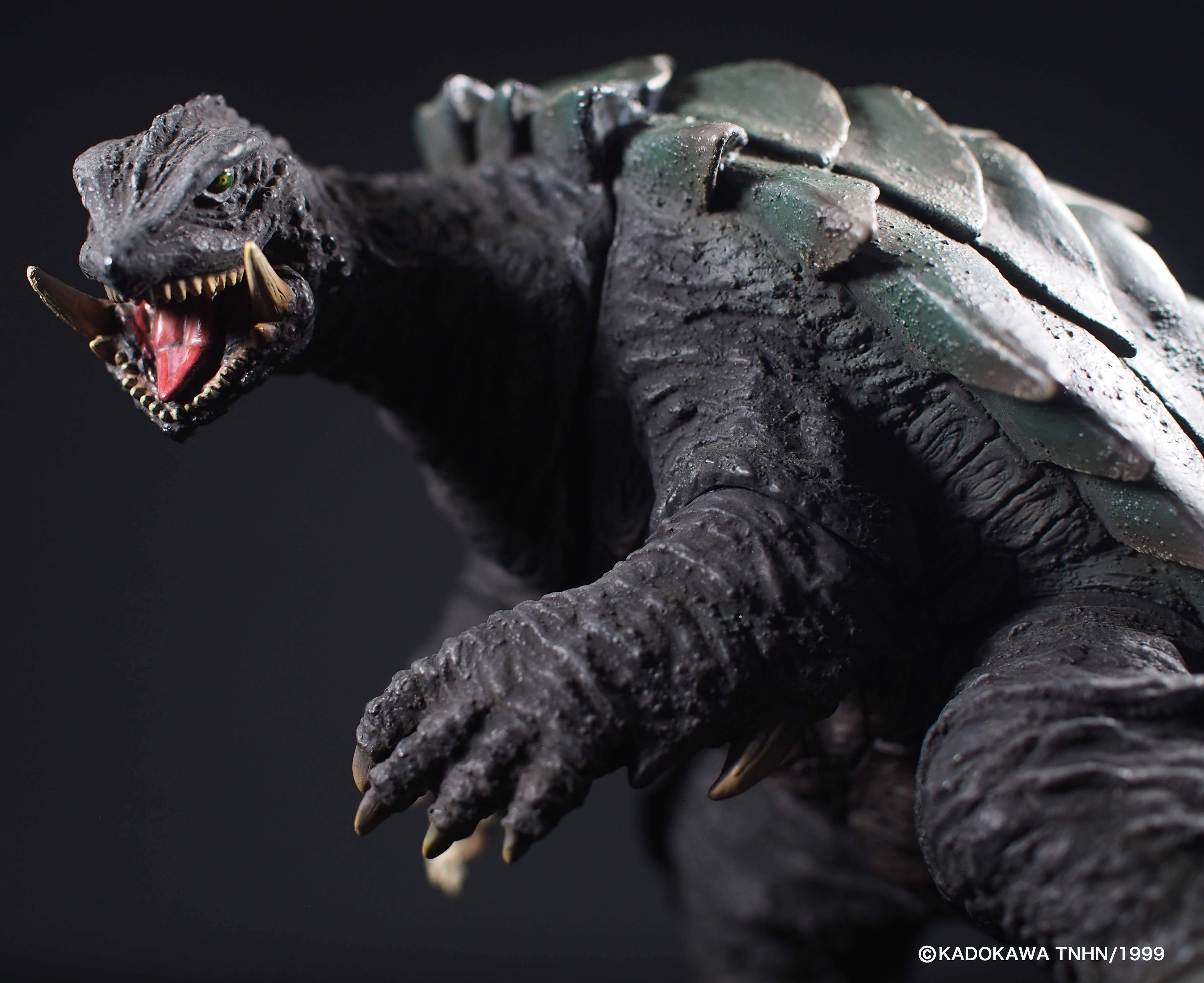 CCP brings us an outstanding figure of Gamera, as seen in 1999's "Gamera 3: Revenge of Iris" as the latest member of their AMC (Artistic Monsters Collection) lineup! The shell covered with sharp points and the low attack posture reminiscent of a wrestler's stance are perfectly reproduced, as are the bones visible in his right arm where he lost his hand to a plasma fireball! Order this amazingly detailed figure for your own collection now!