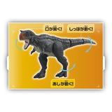 The Carnotaurus features movable mouth, legs, and tail.