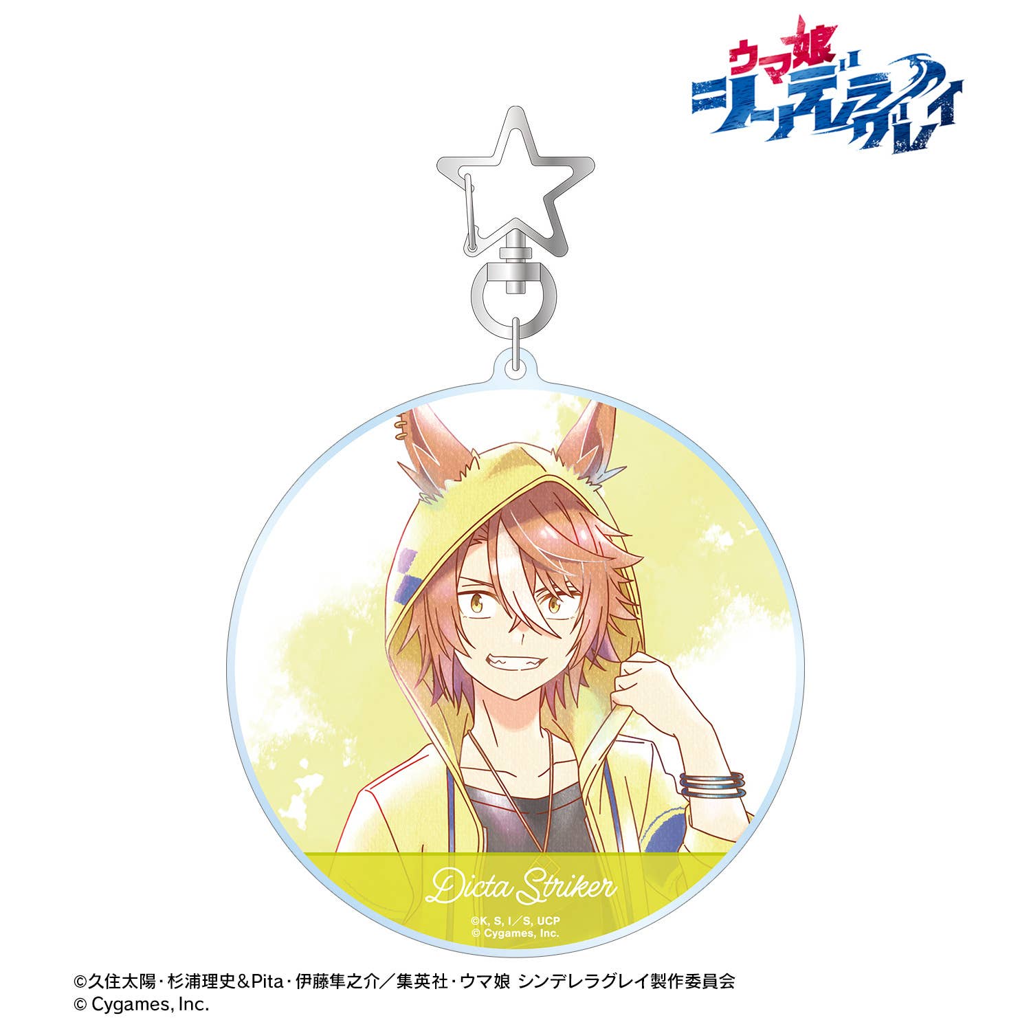 This big acrylic keychain from Armabianca gives us a lovely illustration of Dicta Striker from "Uma Musume: Cinderella Gray"! Use it to keep your keys in line, or used the star-shaped carabiner clip to attach it to your favorite backpack, bag or purse. Order yours today!