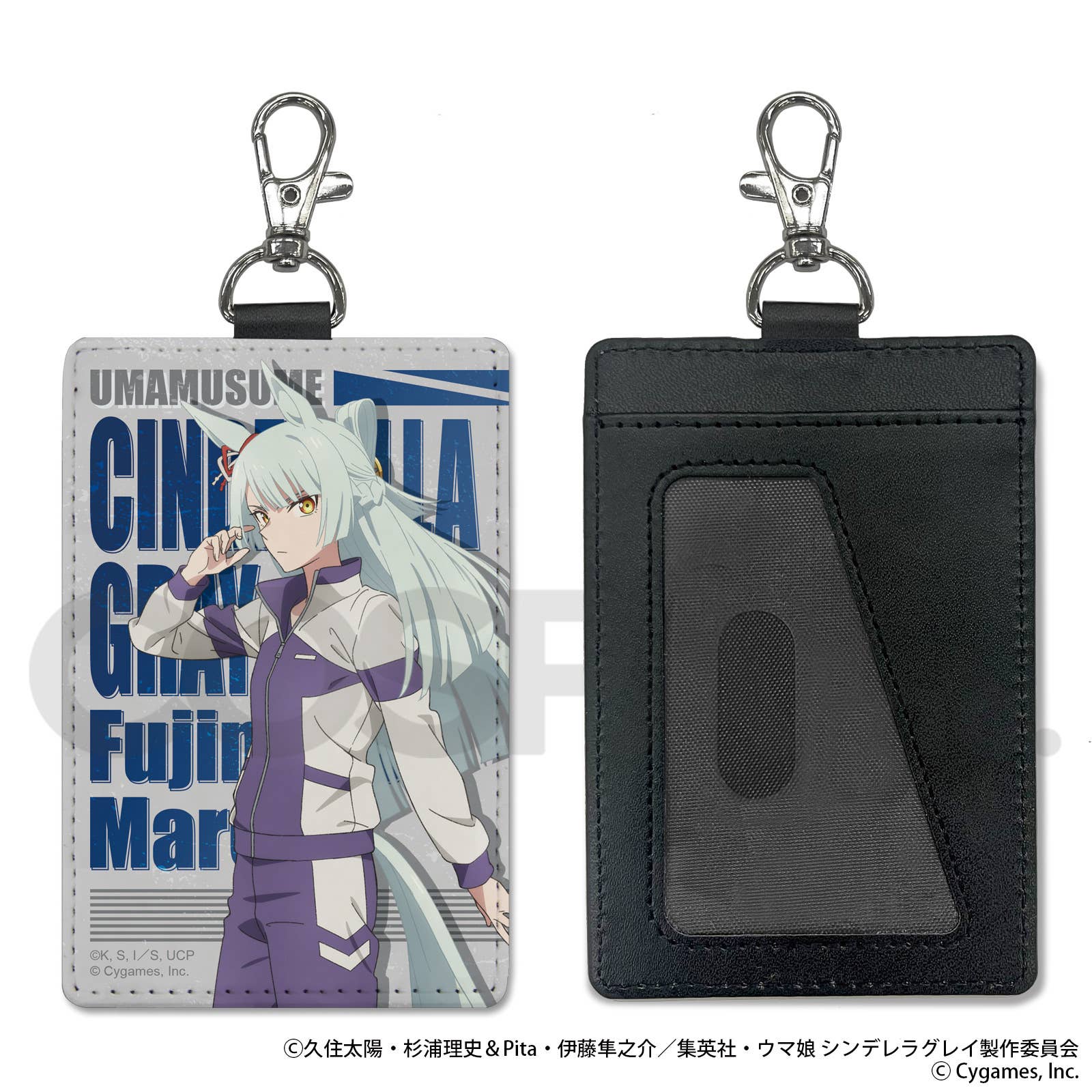 Fujimasa March from the anime "Uma Musume Cinderella Gray" is the star of this pass case from Cospa! This convenient pass case comes with a carabiner clip, making it ideal for commuting to work or school. The clear window of this one-pocket-style pass case has a special shape that hides personal information. It's just what you need for your train pass, bus pass, security card, or electronic money card! The carabiner clip lets you attach it to your keys, bag, or neck lanyard; it's made of high-quality synthetic leather with a beautiful high-definition full-color print. Place your order today!