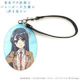 A synthetic leather name tag featuring limited color palette artwork of "Rascal Does Not Dream of Bunny Girl Senpai" character Mai Sakurajima overtop a light blue background. Don't miss out on adding this fun name tag to your collection today, so be sure to order yours now!