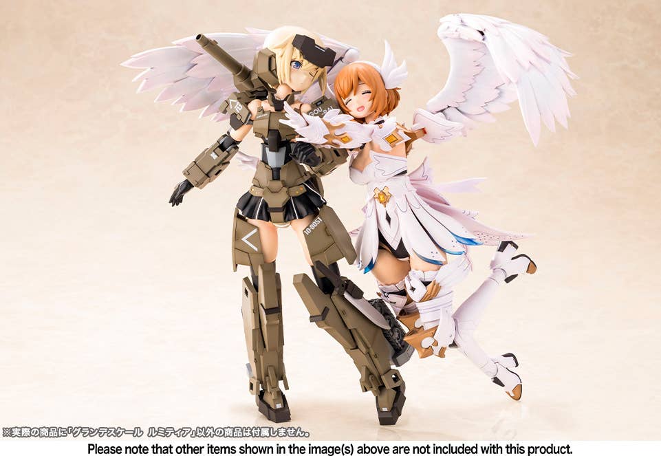 Lumitea, the angelic Dears from Kotobukiya's "Arcanadea" action-figure model-kit series, is now joining the "Grande Scale" lineup! Her character design is by the popular illustrator Necomi, who is also responsible for the main design of the "Arcanadea" series. Parts rearrangement allows you to create two different forms: the non-combat state Normal Mode, and the combat state Willise Mode. The precise CAD data of her earlier incarnations has been enlarged and redesigned to deliver this larger-scale model, bringing fans everywhere a wider range of play plus ease of assembly and painting!