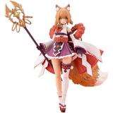 Yukumo, the Japanese-style fox girl from Kotobukiya's "Arcanadea" model-kit series, is back! By interchanging some of her parts, she can be assembled in either Normal Mode, or Wilize Mode for combat. She's based on an illustration by the popular artist necomi, who's produced art for games and VTuber character design. Yukuumo is equipped with 3mm joints, making her compatible with other Kotobukiya plastic model-kit series. Four pre-printed faces, six pairs of interchangeable hands, and decals are also included. Her pigtails are ball-jointed so they can move independently, and the magic circle-shaped part on her back features a Hexagram joint with a 3mm hole in the center, which is compatible with magic circle parts from other figures in the "Arcanadea" series. You can change the angle of the skirt (shimenawa) parts on her back by connecting the shaft at the base; the bell and paper parts connected to the shimenawa feature ball joints for movability. When in Normal Mode, her knee joints are retractable for both beautiful leg lines and a wide range of motion. Her unique staff-type weapon is included, and all the rings on the staff can be moved independently. Her majestic tail can also be moved, with its three-layer structure and ball joints! A special stand is included with a special joint to connect to her tail, and a special wrist joint for holding her weapon is included. She can also use weapons from the "M.S.G," "Frame Arms" and "Frame Arms Girl" series. Neck parts are provided so you can use heads from "Frame Arms Girl" and "Megami Device" figures, and she comes with a base for display, too! Order her for your own collection today!