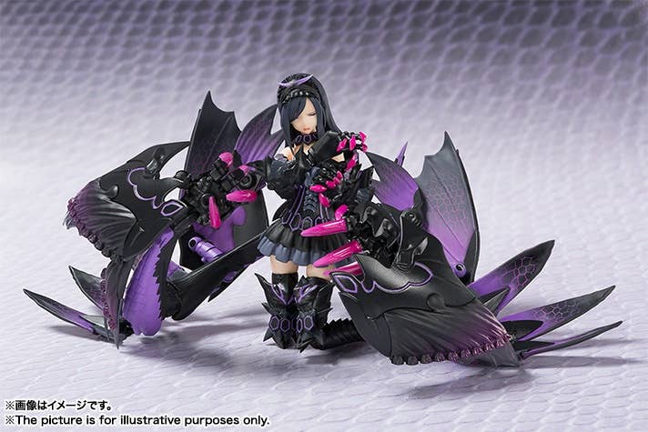 In a unique collaboration between Monster Hunter and skilled mecha girl artist Fumikane Shimada, the Armor Girls Project Tamashii MIX Monster Hunter Kokushoku Ryuki is here! She appears as a dark gothic girl one moment in "Frenzy Mode", and as a powerful monster the next in "Raging Frenzy Mode"!