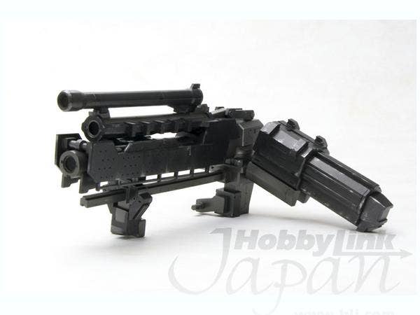 Kotobukiya brings out the big guns, or gun rather, with the OIGAMI back unit. This 40 millimeter snap fit gun is foldable into a more compact form and can be mounted on the GAN01 Sunshine E Feedback plastic model kit (linked below).
