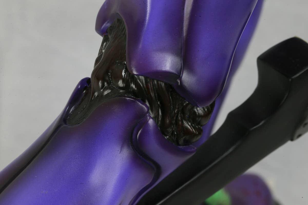 This may well be the ultimate "Evangelion" collectible! This massive figure of EVA Unit-01, 80cm tall (88cm measured to the top of the shoulder armor), was sculpted by Shinobu Matsumura, a world-renowned sculptor of animals. He originally sculpted this figure at a much smaller size (30cm) back in the late 1990s, but now it's been enlarged and brushed up by Matsumura himself to result in this spectacular presentation!