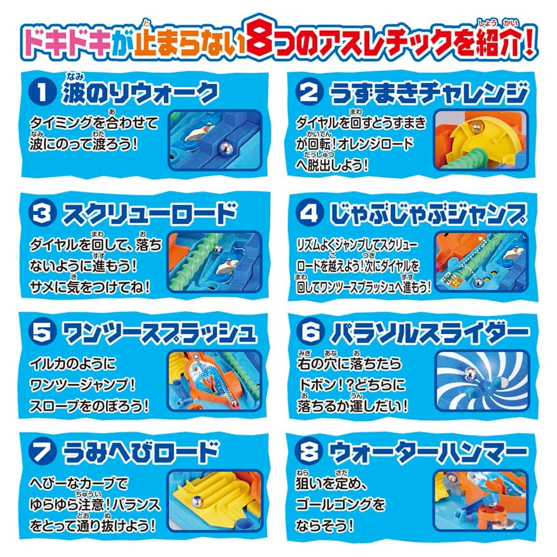 This time, the stage is the sea! The game is full of thrilling ocean-themed athletic activities such as "Wave Ride Walk," "Jab Jab Jump," "Parasol Slider," etc. The goal bell at the end of the game will ring, and you will be on the top of your game!