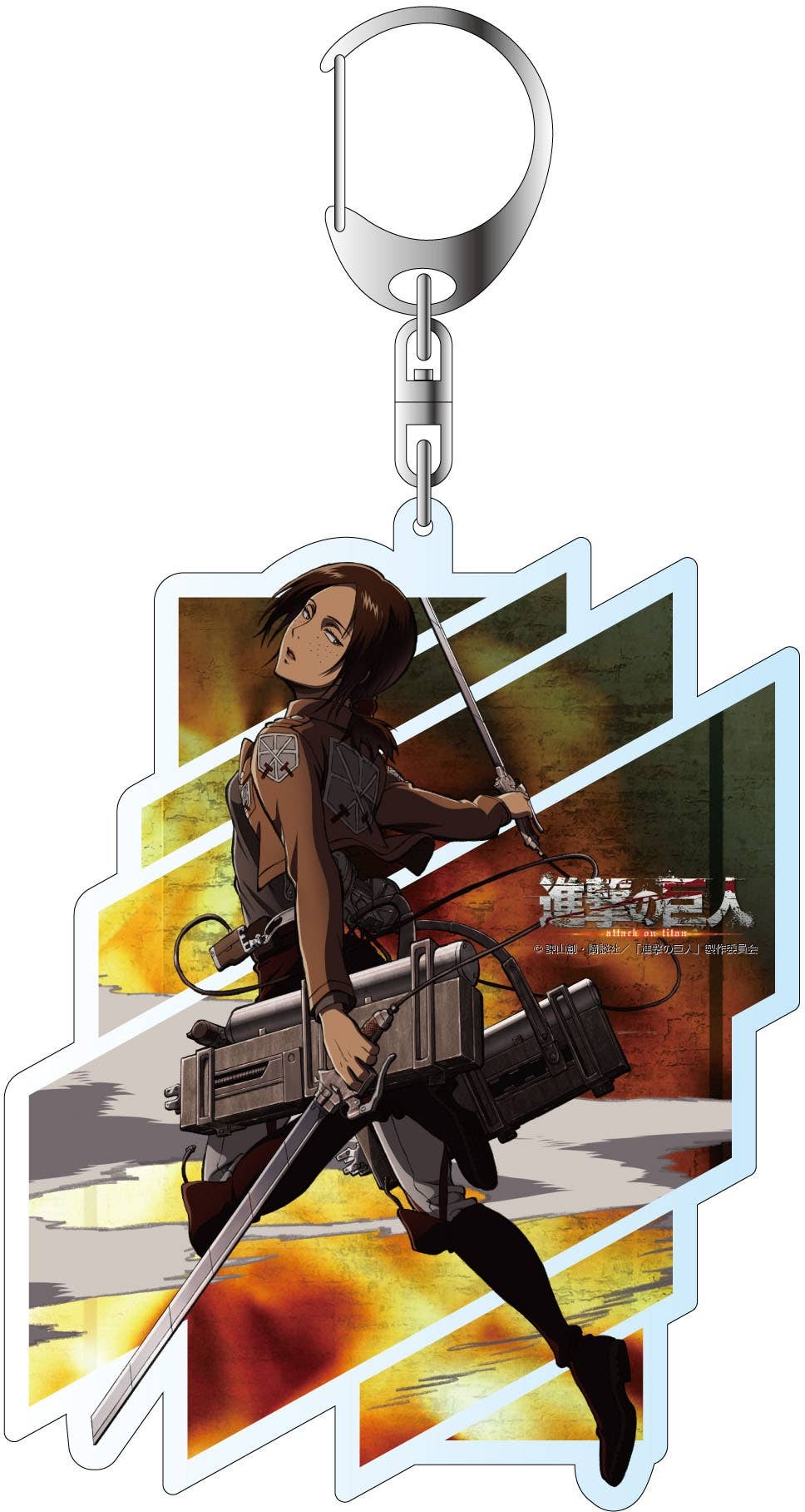 This "Attack on Titan" keychain features Ymir in an action pose in front of a dynamic background. The edges of this keychain are uneven, cut in a way to look like a comic book action sequence in the background. Comes with an attached C-hook clasp.