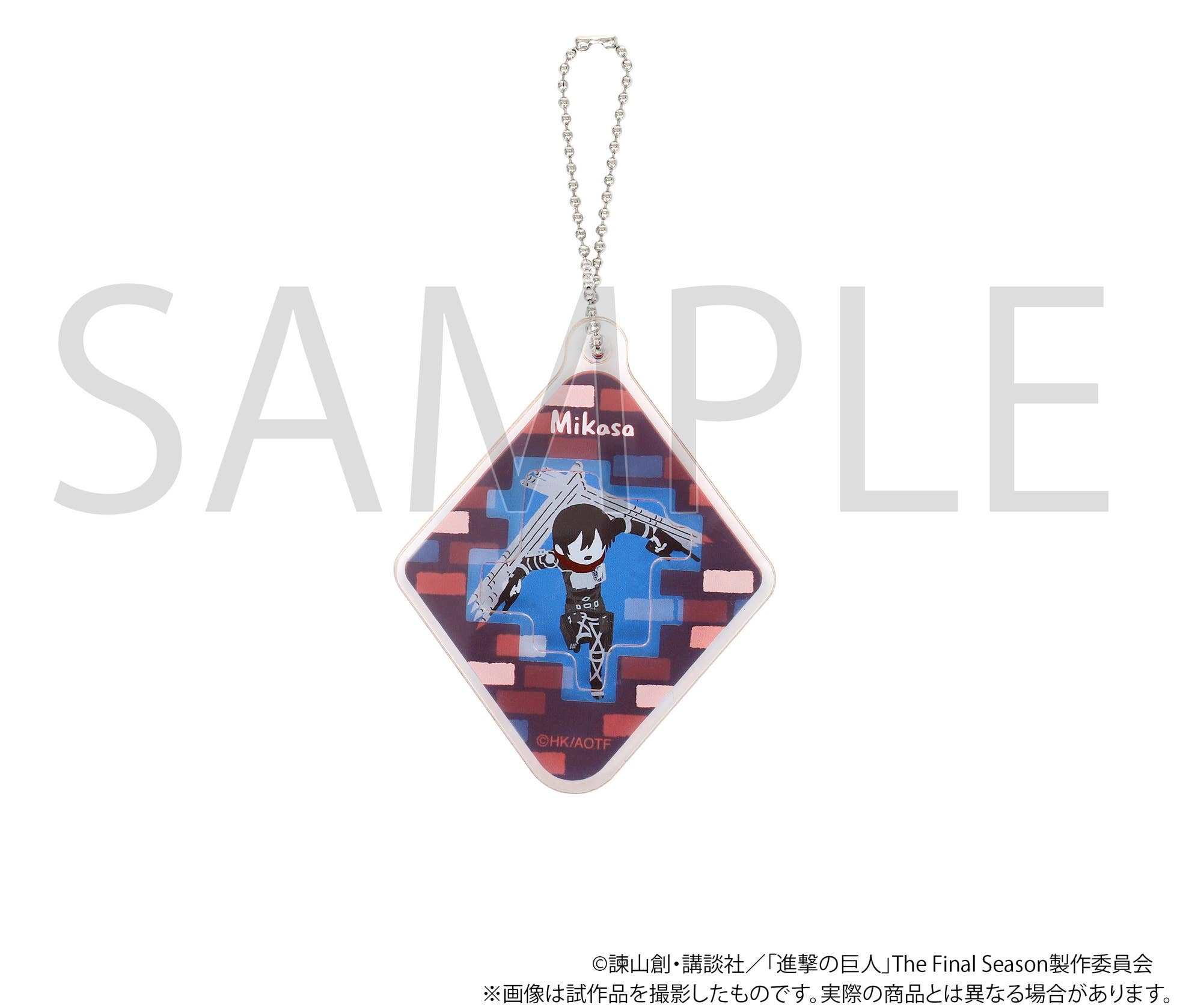 This fun slide acrylic keychain features full color artwork of the "Attack on Titan" character Mikasa, and makes for an excellent addition to any fan's collection. Don't miss out, be sure to order yours today!