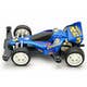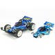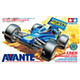 This Mini 4WD model assembly kit is a special celebration of the 30th anniversary of the Avante Jr., a car which has inspired millions of Mini 4WD fans since its debut back in December 1988. In this kit are not only the original blue molded body and marking stickers, but also a special blue color plated body and commemorative 30th anniversary design stickers! The packaging is inspired by the original Avante Jr. design with dedicated accents, too. This model runs on the classic Type 2 chassis, which is molded in Grey ABS. White 6-spoke wheels are paired with large-diameter slick tires. 5:1 and 4.2:1 gears are included.