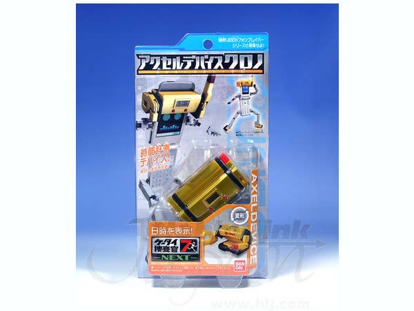 Here's an excellent toy of Axel Device Chrono that's not only capable of switching between its Device Form and Active Form, it can also tell time as a working digital clock! Attachable to the head and feet of any one of Bandai's DX Phone Bravers, linked below! One test button battery is included. Please note that the photos shown are of a prototype; the production version may vary.