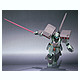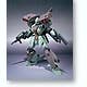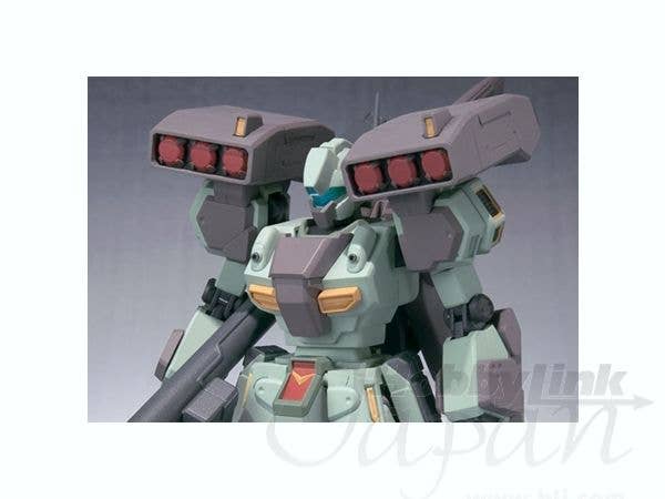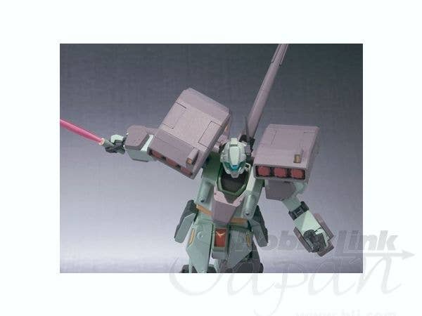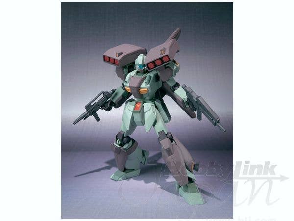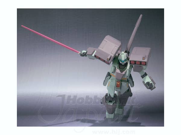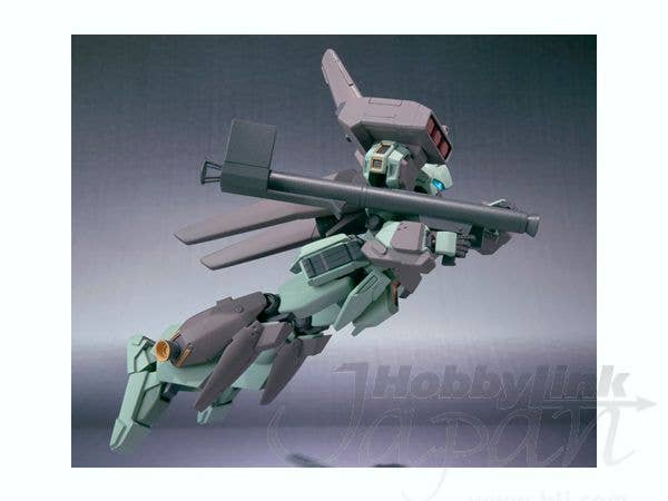 The heavily armored Stark Jegan appearing in "Gundam Unicorn" is the Earth Federation Forces' prototype Mobile Suit built for providing mid-range fire support. This well-articulated Robot Damashii action figure comes packed with its signature weaponry consisting of two types of beam rifles, a bazooka, and a beam saber. Optional hands are also provided. Some of its armor parts are removable.