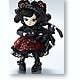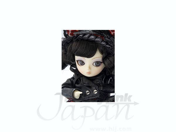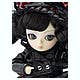 In Japanese hanakotoba ("flower language"), the Denphalae stands for fascination, prettiness and selfishness. This raven-haired darling is quite grown-up looking for such a little girl! She's wearing a dress in an outrageous pink-and-purple leopard print, trimmed with black lace and a ribbon bow at the waist. Her accessories include a matching headdress with "ears," a black leather-look jacket (!), and a black leather-look stuffed toy bunny friend. Black shoes and black lace stockings complete her "baby punk" look. Clearly she needs a good home!