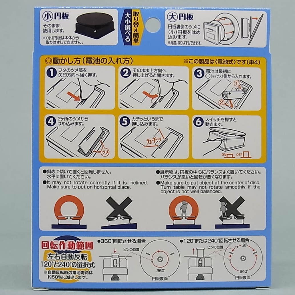 This is a turn table, ideal to display your favorite figures and models! It comes with a 80mm and 120mm plates, and the plates can be moved in reverse as well! Batteries are needed but not included in this product. Order today!