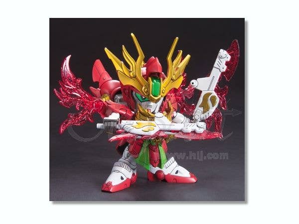 Part of Bandai's "BB Senshi Sangokuden" ("BB Warrior Romance Of The Three Kingdoms") line, this simple kit is molded in color and features polycap joints, detachable armor parts, and heel stamps with his name etched into both heels for you to stamp on anything you like when stamp dye (not included) is applied! Foil stickers are provided for detail so painting is not required, but would add a more realistic appearance to the final product. A full-color manga chapter drawn by PLEX Tatsuhiko Shimoda is also included (printed on the assembly instructions sheet). Although the assembly instructions are in Japanese, they are extremely well illustrated so anyone can follow them.