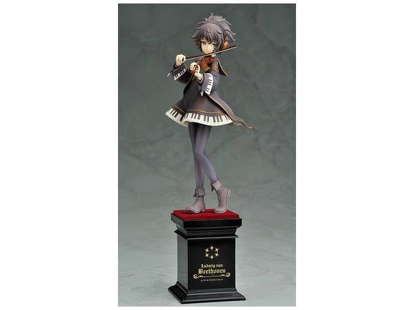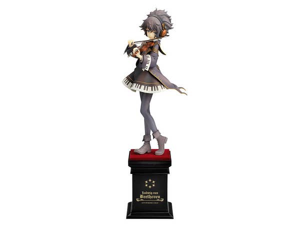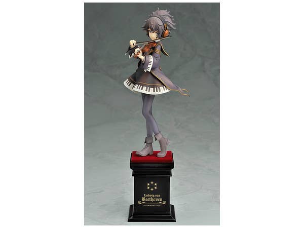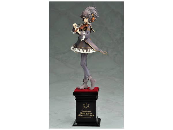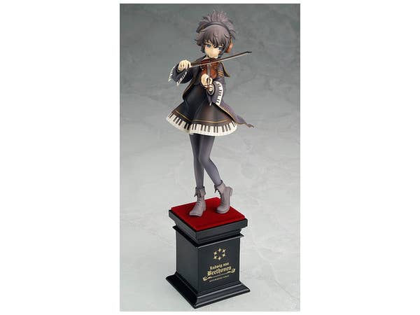 From "Eiyuu Senki Gold," here's Beethoven! Standing 23cm tall (including her base), she wears her familiar dress with a piano motif. Smiling slightly, she gently holds her violin as she plays it. Look very closely into her deep blue eyes, and you'll see a highlight shaped like an eighth note!