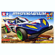 These terrific little Mini 4WD cars feature snap assembly (so no glue is required), race-tuned chassis, and racing wheels with rubber tires, plus double-shaft motor. Required are two AA (UM3) batteries, not included. This particular kit depicts the Bison Magnum from the manga and anime "Bakuso Kyodai! Retsu & Go" ("Speedy Brothers! Let's and Go!"), the story of two Mini 4WD-crazed youngsters. Tamiya's Mini 4WD cars are specifically meant to race on Tamiya's racing circuits.