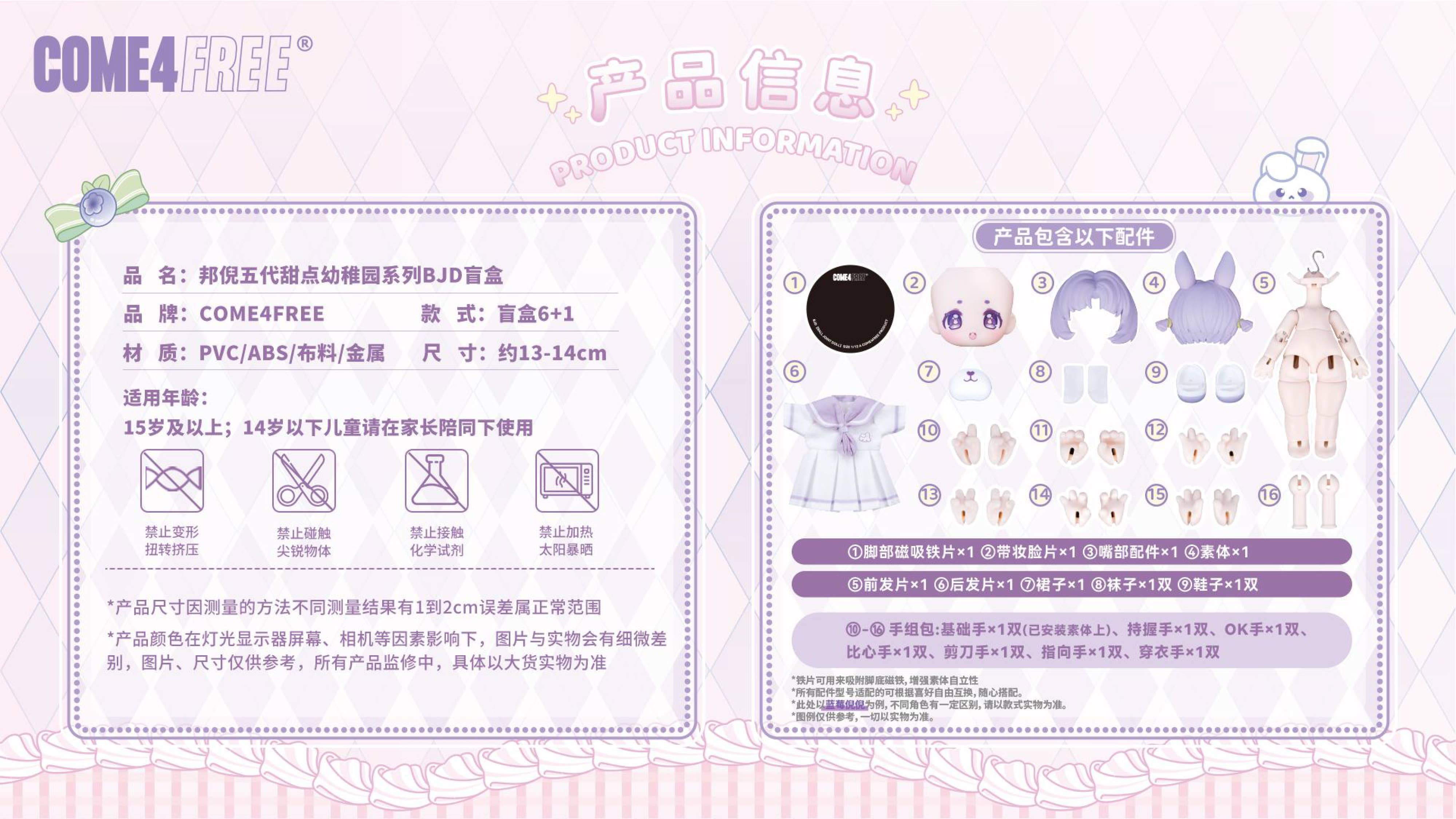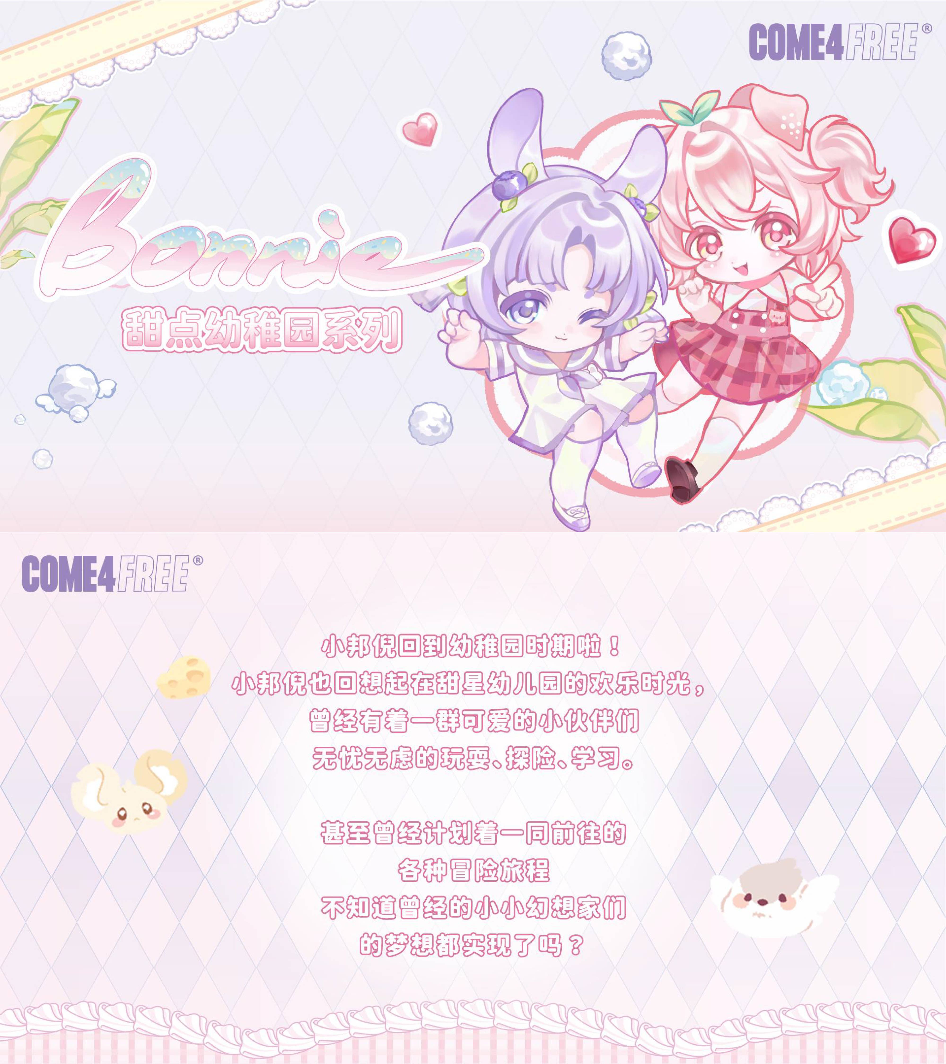 The "Bonnie Sweets Kindergarten Series" from Come4Free brings us a lineup of adorable little BJD-style posable figures! Each of these kindergarten students comes with their full outfit, plus a base to stand on. There are seven different figures to collect and trade, including a secret figure; they're randomly packed in boxes of six. Place your order today!