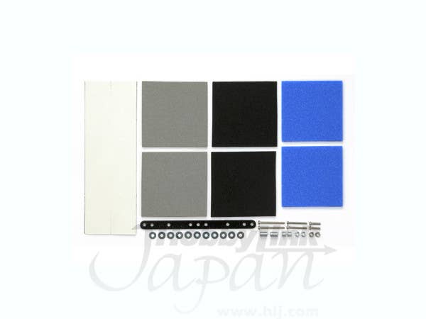 A set of three types of brake sponges with mounting hardware for Tamiya's MS, SUPER XX, and SUPER-II chassis sets.