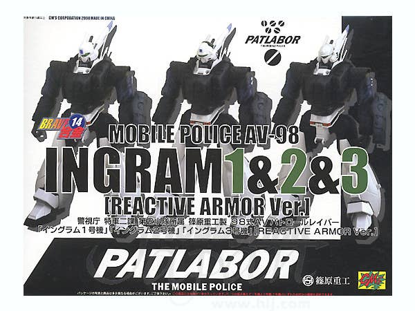 CM's Corporation has "Patlabor" fans cheering yet again with this new release of the Brave Gohkin AV-98 Ingram action figure, now fully equipped with reactive armor to battle military labors! This set contains a well-articulated Ingram action figure with interchangeable head parts to display it as either one of the three Ingram units, each with intricate mechanical detailing faithfully based on their designs in the 1993 "Patlabor 2: The Movie." Any one of the three included pilot figures (Isao Ohta, Shinobu Nagumo, and Noa Izumi) can be placed inside the torso cockpit. The reactive armor parts are removable, and real fabric is used to cover the inner body. Weapons and accessories include a revolver gun, riot gun, two stand sticks, two shields, interchangeable head parts to displaying Ingram 2 or Ingram 3, number plate stickers for Ingram 1, 2, and 3, and three pairs of optional hands, plus a custom display base. Made of ATBC-PVC, ABS, die-cast metal, and POM. Get three to display all three Ingram units together! (