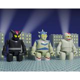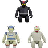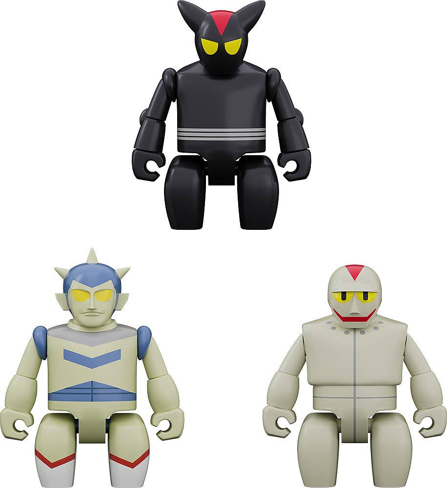 This set features Black Ox, Gilbert, and Bakkasu from "Tetsujin 28"! Their heads, arms, and legs are movable, and each one comes with a convex block base. The holes on the bottoms of their feet can be attached to the 5mm-diameter studs on the bases, and they can also be attached to other brick-style toys with the same measurements. Order them for your own collection today!