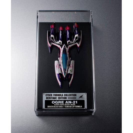 The Ogre AN-21 Super Aero Boost Mode from the OVA anime "Future GPX Cyber Formula SIN" is joining MegaHouse's "C.F.C. (Cyber Formula Collect) -Heritage Edition-" series! This completed display model reproduces the Super Aero Boost Mode -- a boost mode that gains additional acceleration through a flashover caused by the constant accumulation of boost pressure. The combination of detailed markings reminiscent of real racing cars combined with its deep, beautiful coloring results in an item that conveys a sense of realism and luxury that transcends its compact size! A display case and a foil sticker nameplate are included. You'll be proud to put this beautiful beast on display -- order yours today!