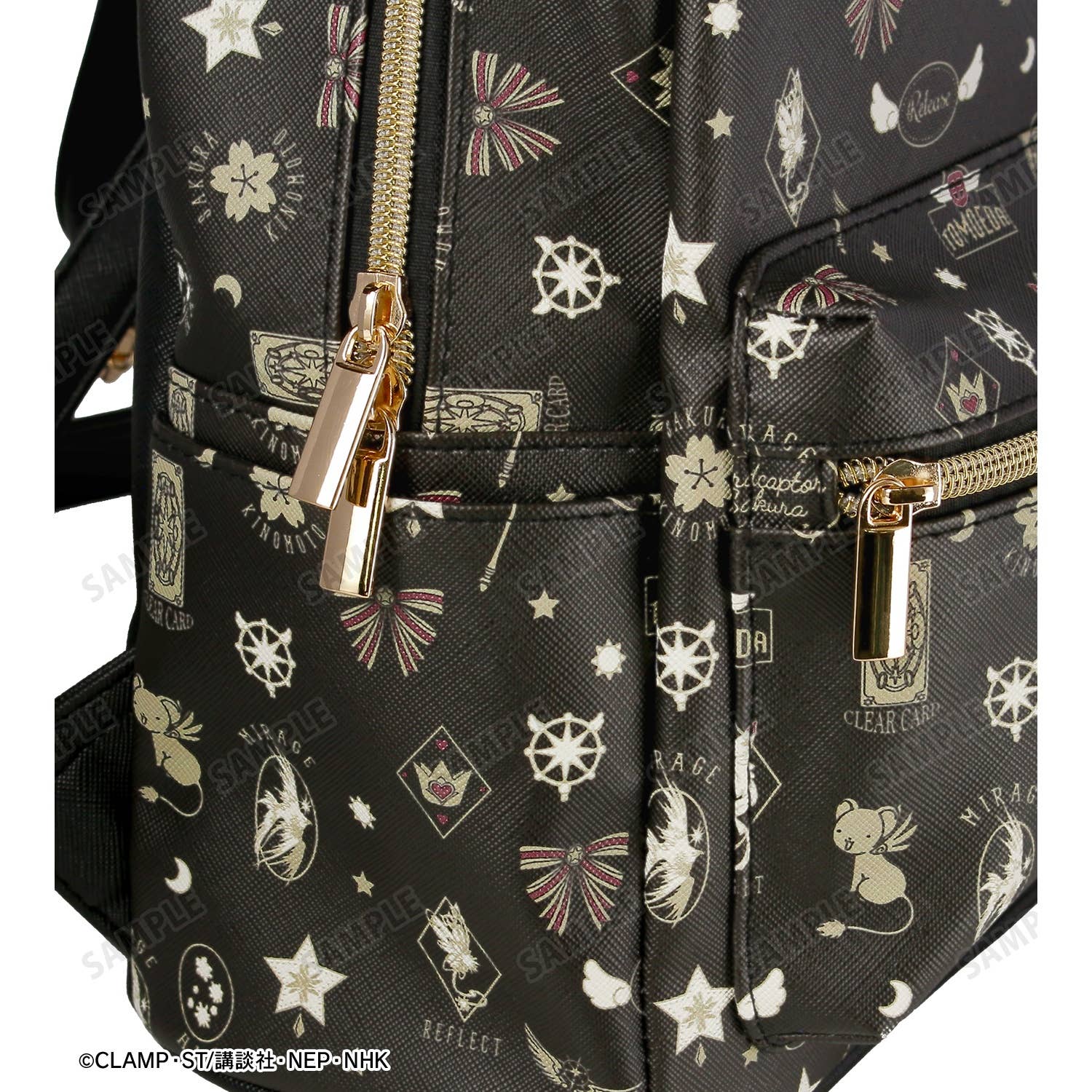 This stylish backpack features an all-over pattern of motifs from "Cardcaptor Sakura Clear Card Edition" in an elegant white-and-red-on-black print! Kero-chan, a Clear Card, the Dream Wand, Sakura's battle costume and more are represented. The wide gusset provides excellent storage capacity, and the outer zippered pocket is idea for storing small items. It's perfect for travel, events, and day-to-day use! You'll love it -- order yours today!