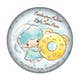 This circular magnet depicts Kiki holding a giant Kero-chan donut.