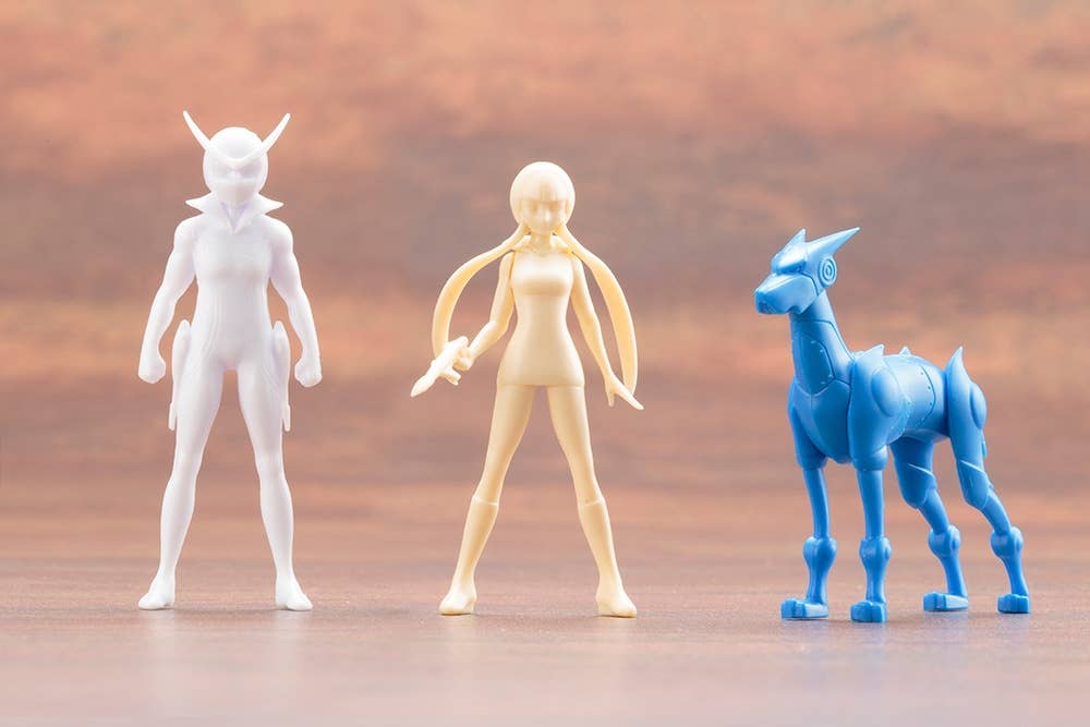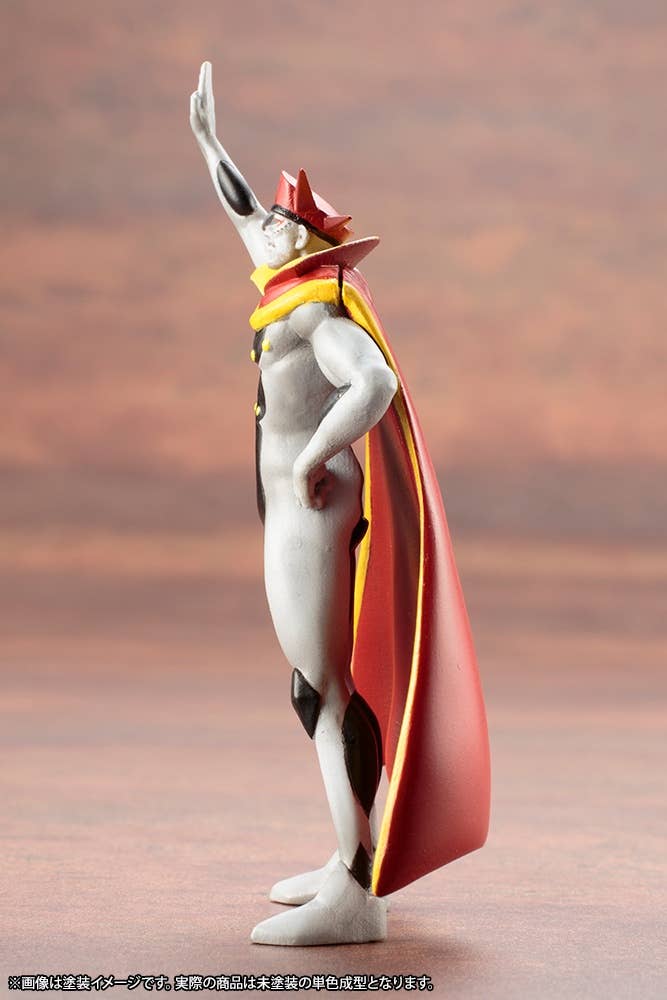 Molded in multiple colors, this model kit contains parts for figures of Braiking, Casshan, Luna, Friender, four different robots, and an additional smaller figure of Braiking! The large figure of Braiking will be about 7.5cm tall when assembled; the other figures vary between 3.5cm and 12cm tall.