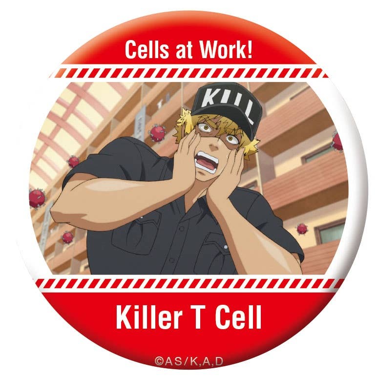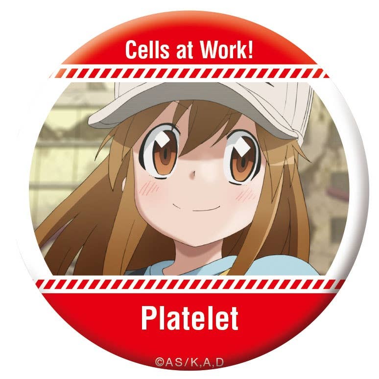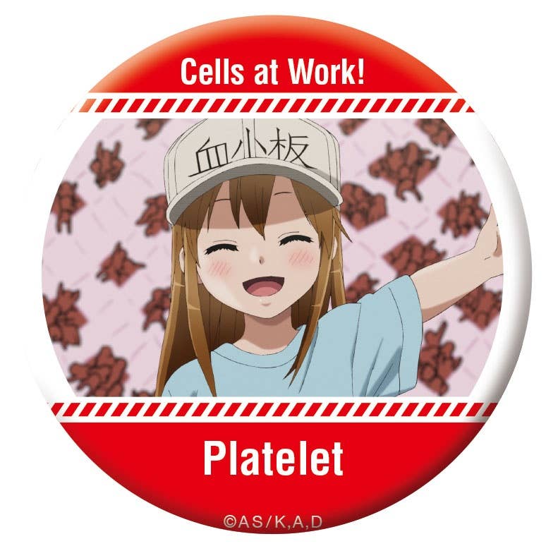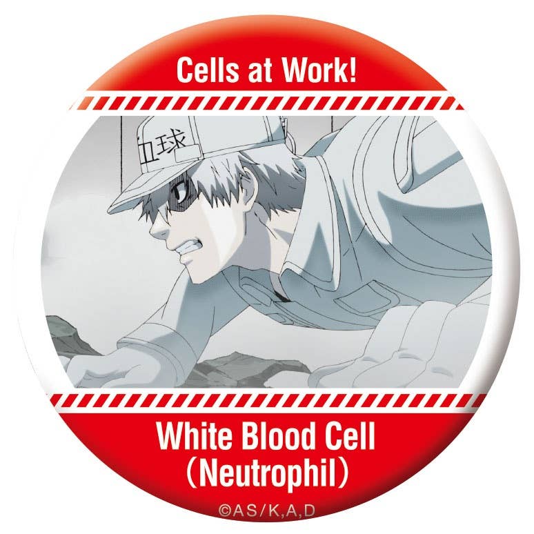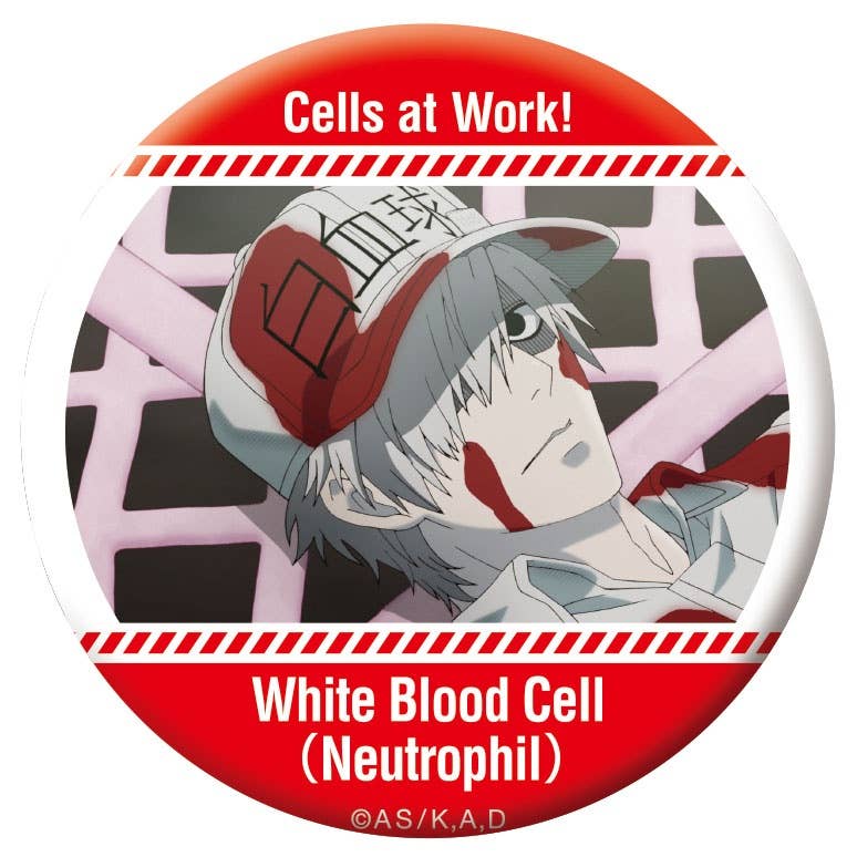 Here's a box of can badges featuring assorted anime stills from "Cells at Work!".