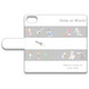 A white and grey striped smartphone case from "Cells at Work," decorated with rows of characters along the grey stripes, and simple text designs on the white.