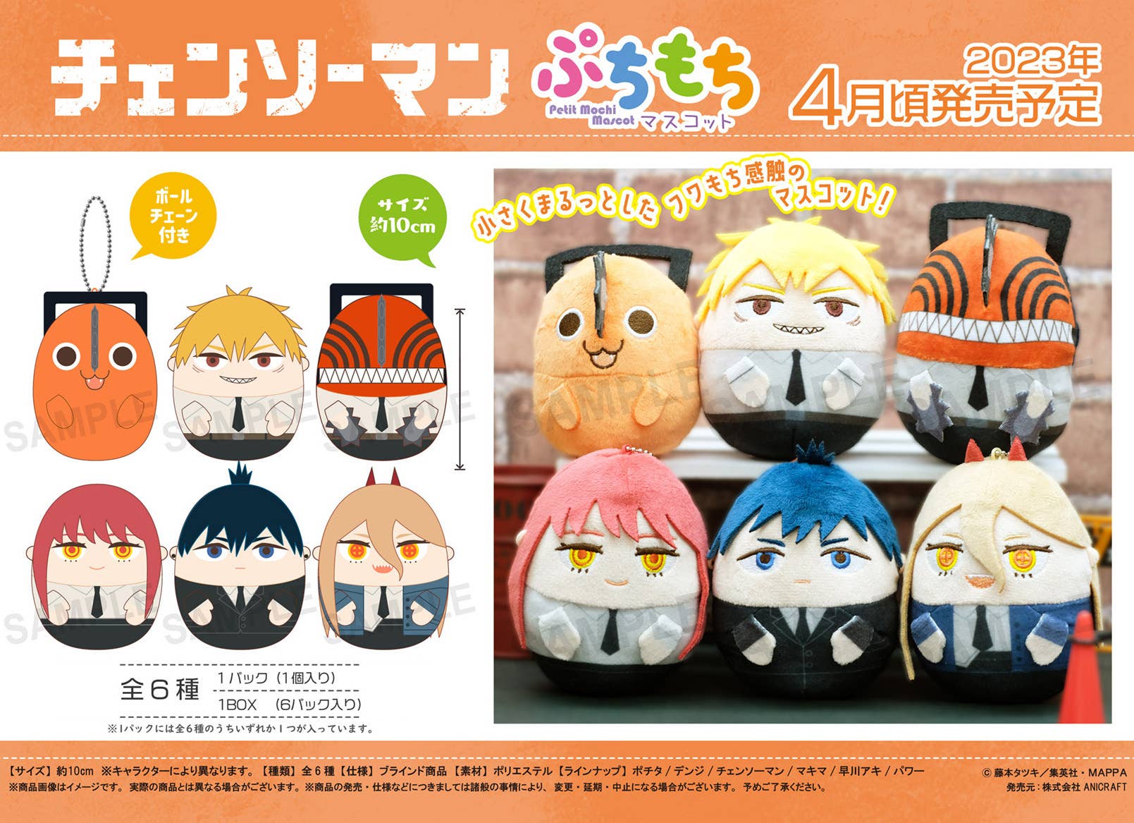 These Chainsaw Man Petite Mochi Mascot are cute collectables that you'll want to get to show off your love of your favorite characters of the series! With a simple but charming rounded design, fan favorites like Denji, Makima, Aki, Power, Pochita and Kobeni are all available in this super cute form. 6 randomly selected plush come in each box, so trade with your friends to complete the set!