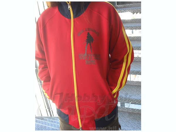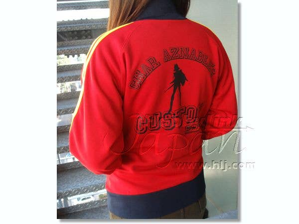 Boy, will Char Aznable be cranky if he catches you wearing his custom jersey! This eye-grabbing red zip-up jersey, trimmed in black and yellow, is branded both coming and going with a neat "Char Aznable's Custom" design. Made of durable 100-percent polyester. Length (shoulder to hem): 69cm. Width (measured flat, under the arms, one side only): 57cm.