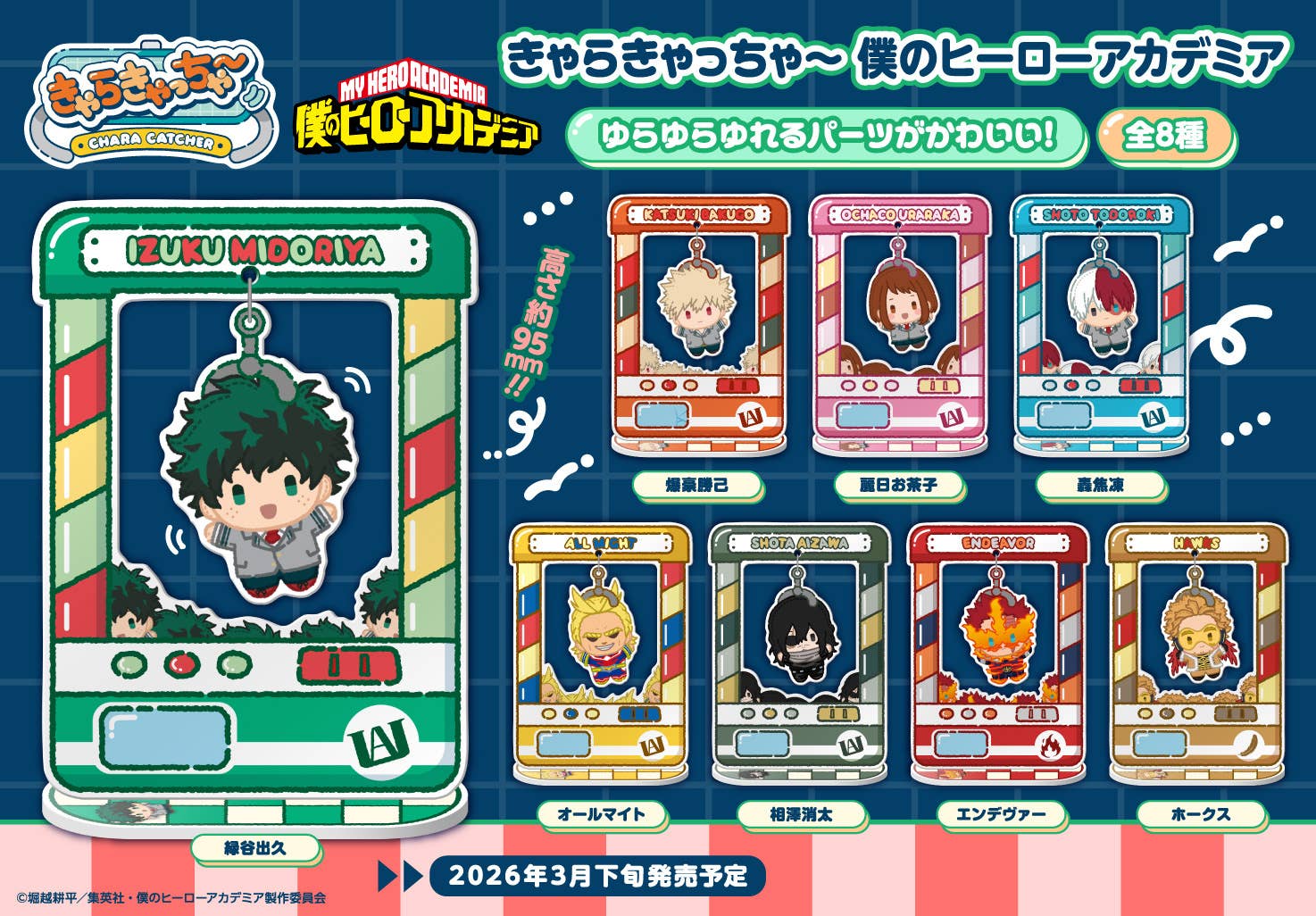Your favorite characters from "My Hero Academia" are joining MegaHouse's "Chara Catcher" series! This is a lineup of crane game-style acrylic stands with swaying characters. Line them up to create a fun arcade-style atmosphere; they use MegaHouse's original super-cute illustrations! There are eight different characters to collect and trade, randomly packed in boxes of eight. Order yours today!