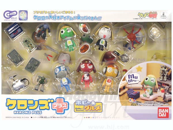 Can't get enough of Bandai's Chibic Keroro figures and diorama sets? Here's a cool new set featuring Chibic figures of the Keroro platoon with new facial expressions not seen in previous Chibic sets! Comes with a wide variety of hobby supplies and gourmet accessories for them to interact and decorate the diorama sets with, too! Three sheets of stickers and five stands are included.
