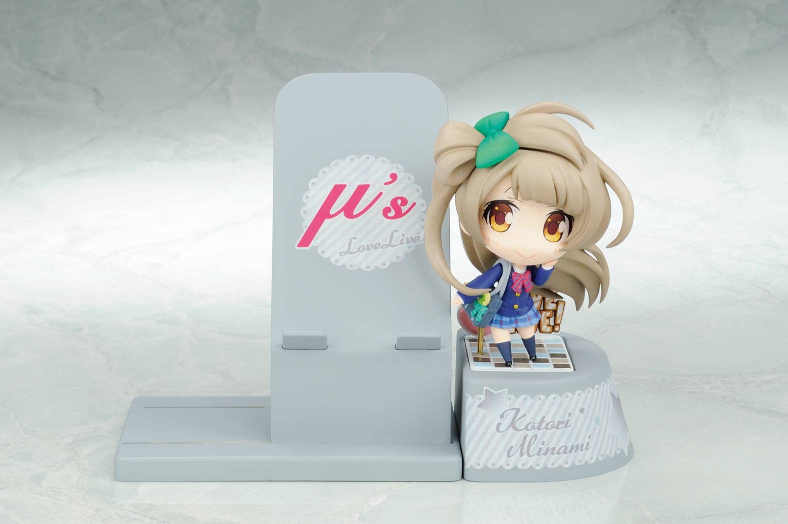 The idols of "Love Live!" join the Choco Sta series of smartphone stands by Broccoli! The cute figure of Kotori measures about 8cm tall and can rest in the stand, or be displayed separately. Additionally, the smartphone stand can move right to left on the base, allowing for a wide range of smartphone sizes to fit next to the figure! Decorate your desk or shelf with this great collector's item today!