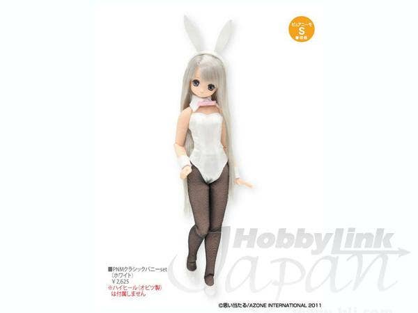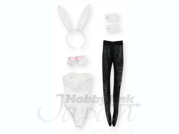 Hop to it--dress up your Pure Neemo like a beautiful bunny! Includes a satiny white bodysuit that zips up the back, wrist cuffs, a collar with a pink bow tie, black stockings and, of course, the bunny ears! (The shoes shown in the prototype photo are not included.) Made to fit 25cm (M size) Pure Neemo dolls by Azone and may not fit dolls by other manufacturers.