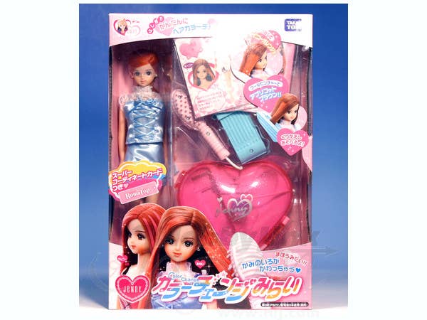 Changing hair color is easy for Color Change Mirai! Her battery-operated (requires three AA batteries, not included) Color Change Heart Case powers a Hot Brush and a Cool Pincher. If you brush Color Change Jenny's hair with the Hot Brush, her hair will become shiny orange! Using the Cool Pincher on her hair will make it apricot brown. You can create neat two-tone looks with this set, too.