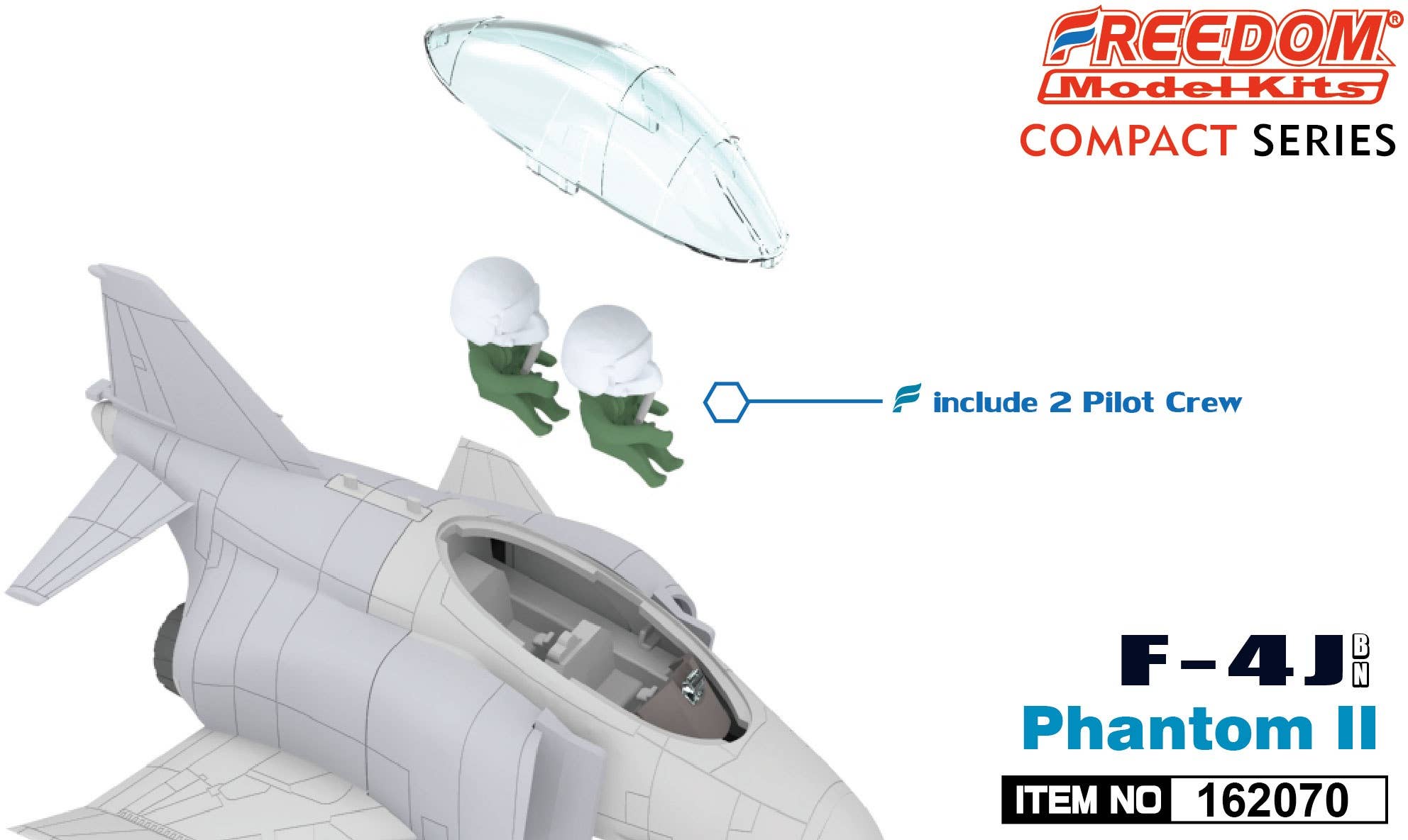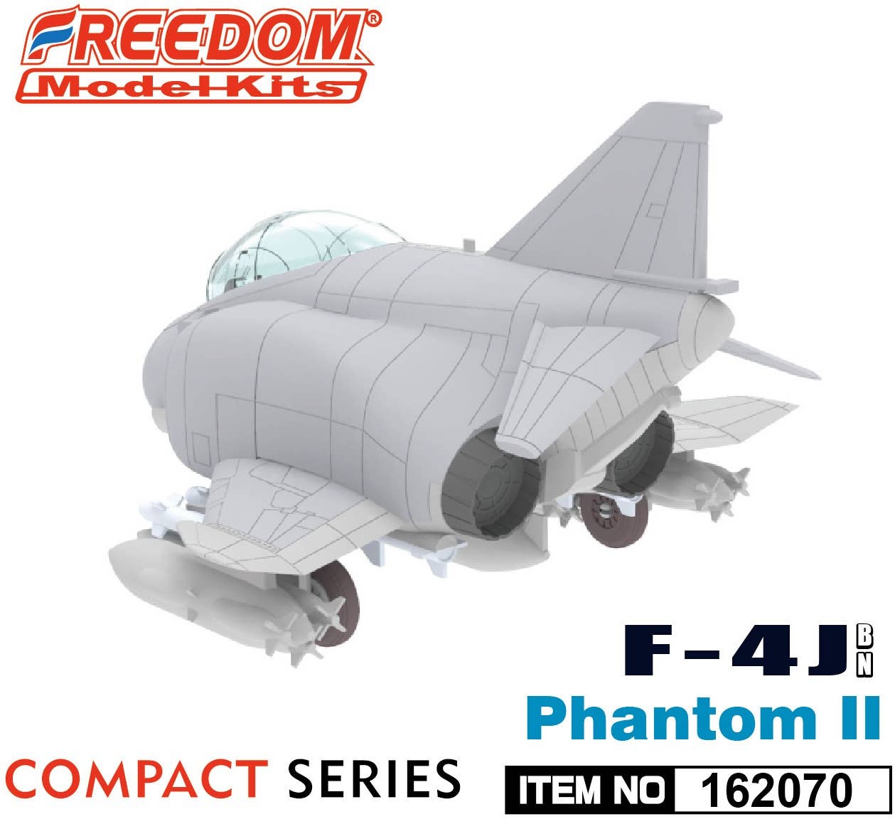 Freedom Model Kits's "Compact Series" brings us highly detailed and accurate model aircraft in an incredibly cute style! This kit of the F-4J Phantom II includes clear parts, decals, and two pilot figures. AIM-9 and AIM-7, MK82 and MER are also included; this kit can be built as the J or B/N type. Place your order today!