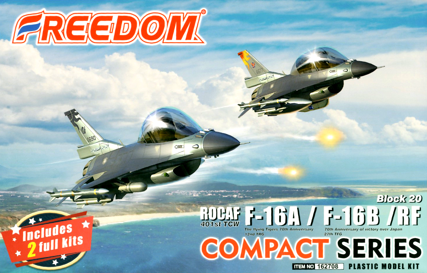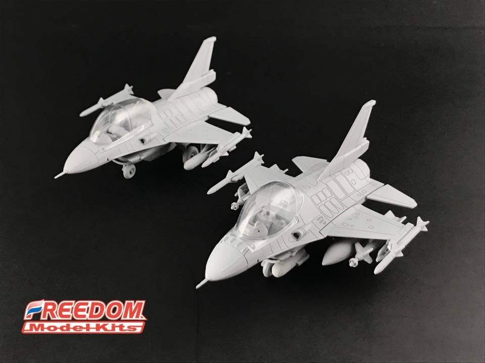 From Freedom Model Kits' "Compact Series" comes the ROCAF 401st TCW: F-16A/F-16B/RF! The kit includes clear parts, decals, and even pilot figures so they're packing a lot of detail despite their small size. It comes with parts to build two F-16s. Order today!