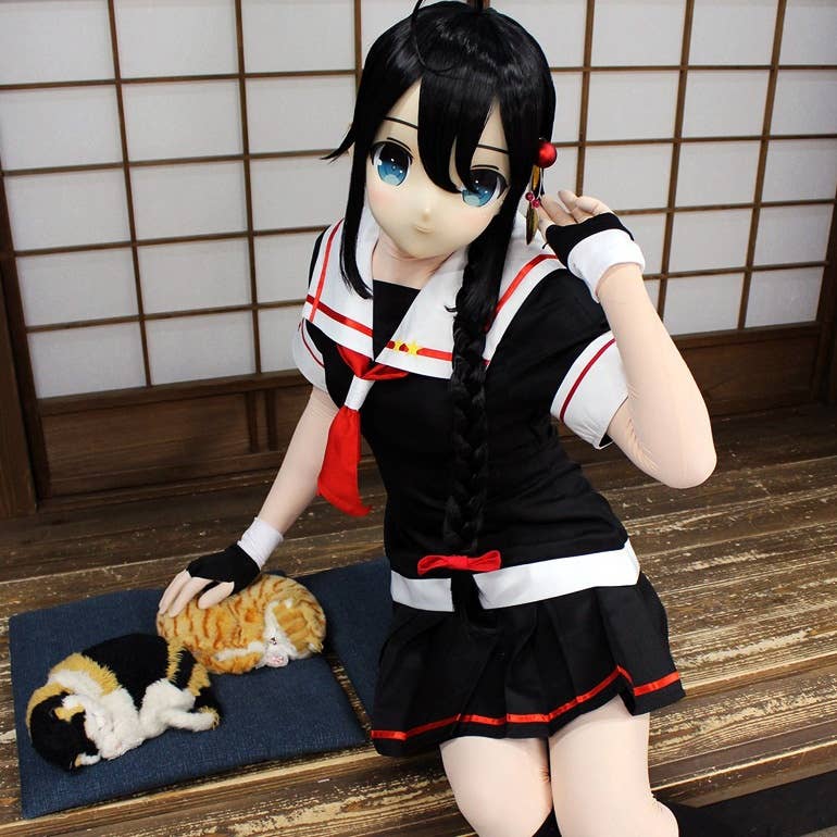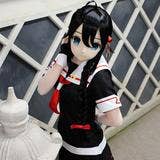 From Munimuni (Rizas) "Kawaii Series," this 4-piece set includes the mask with make-up pre-applied and lens eyes, a black wig, and an occipital part and connection tape so you can secure the mask safely to your head. Thanks to the separate occipital parts, you can easily adjust the mask to fit your head size, and you can style the long, black wig to suit your cosplay needs. (Note: The wig does not come pre-styled.)
