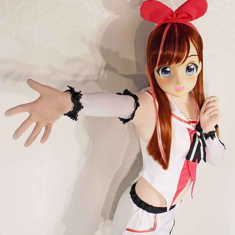 From Munimuni (Rizas) "Kawaii Series," this 4-piece set includes the mask with make-up pre-applied and lens eyes, a wig, and an occipital part and connection tape so you can secure the mask safely to your head. Thanks to the separate occipital parts, you can easily adjust the mask to fit your head size, and you can style the long wig to suit your cosplay needs. (Note: The wig does not come pre-styled.)