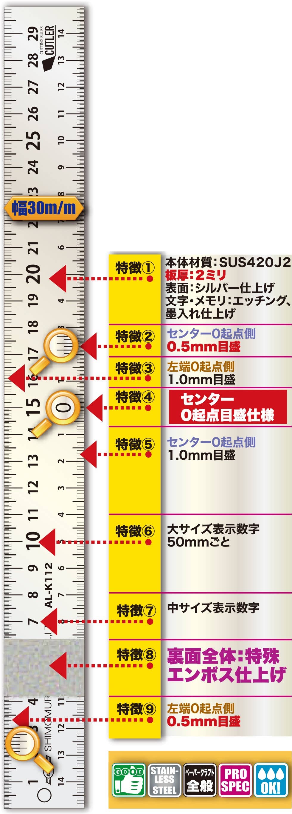 The special processing on the back side doesn't just help with slipping, it prevents gaps between the ruler and the object underneath, too! The numbers are big and easy to read, and are printed with laser marking ink, so there's no worry of the numbers or lines disappearing even after long-term use.