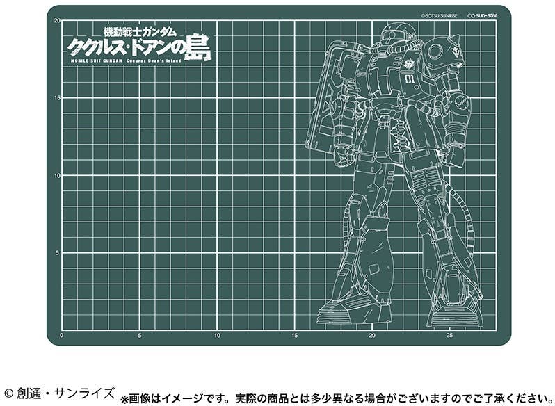 This useful cutter mat from Sunstar Bungu features a newly designed Zaku, as seen in the new Gundam film "Cucuruz Doan's Island"! It's just what you need to keep your workbench safe from damage when building your next Gunpla -- order yours today!