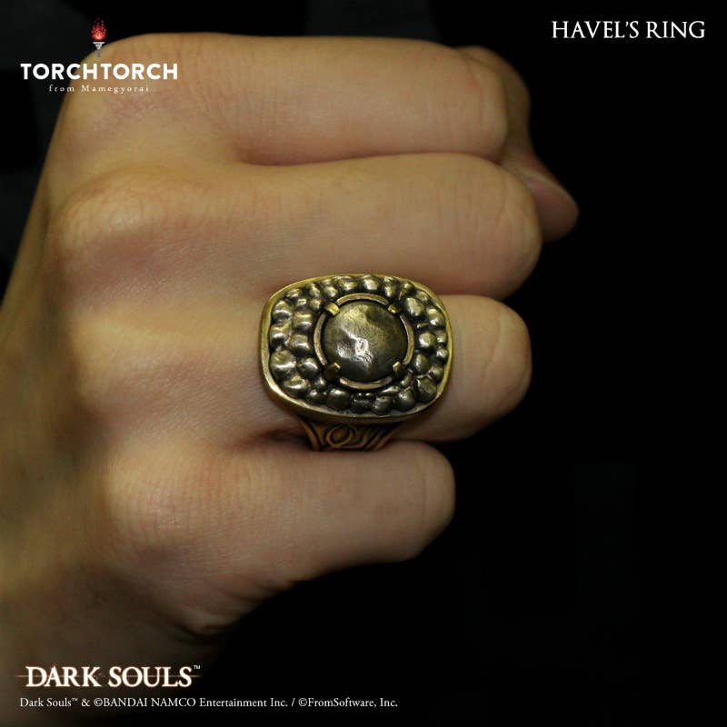 TORCH TORCH, an apparel brand renowned for the concept of wearing pop culture, teams up with the "Dark Souls" series to present this replica of Havel's ring to you! Appearing in "Dark Souls" and "Dark Souls III", this ring was found useful by many players trying to manage their equipment weight. The three-dimensional design is faithful to the in-game model, and the brass base is given an antique-processing to give it texture. Fans definitely don't want to miss out on ordering this beautiful ring, so don't miss out and be sure to order yours today!