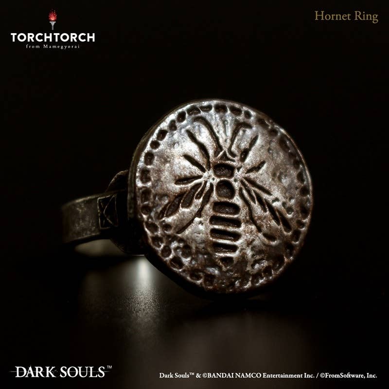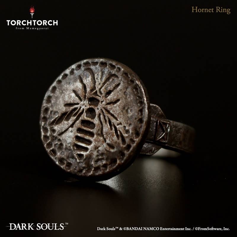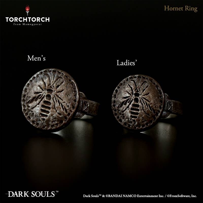 The apparel brand TORCH TORCH brings us a luxurious version of the Hornet Ring from "Dark Souls" and "Dark Souls III"! Its design is faithful to the ring's in-game appearance, complete with its texture of carefully hand-carved patterns and a subtle nuance of rust brown giving it a realistic ancient feeling. A rough finish and scratches are intentionally applied to make it look weathered and worn. Order it for your own collection today!