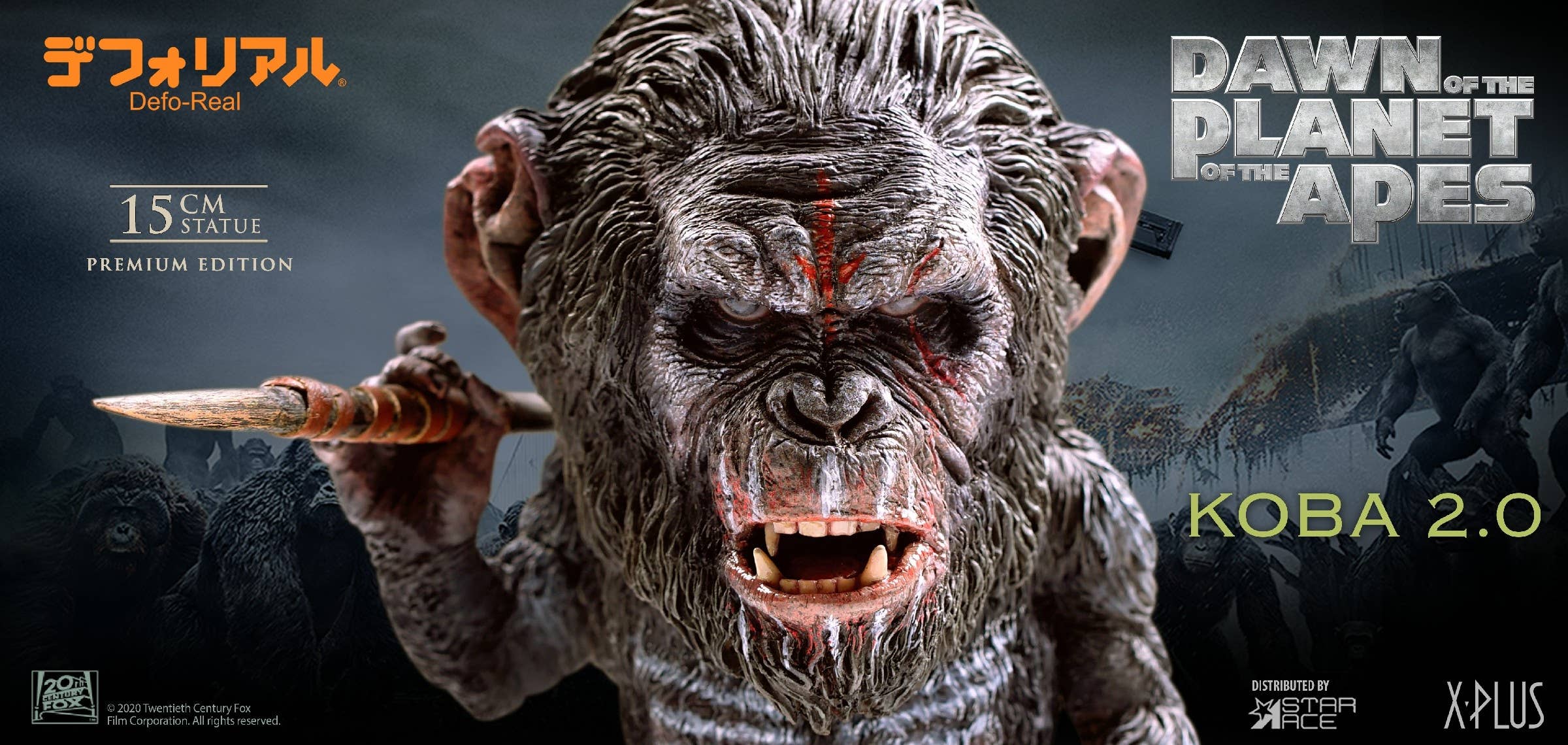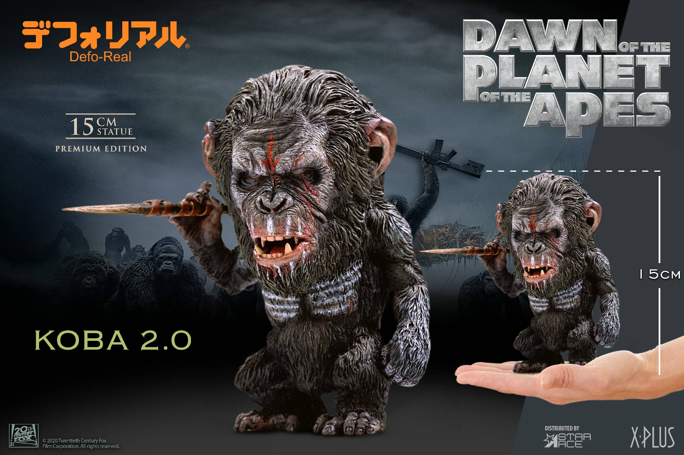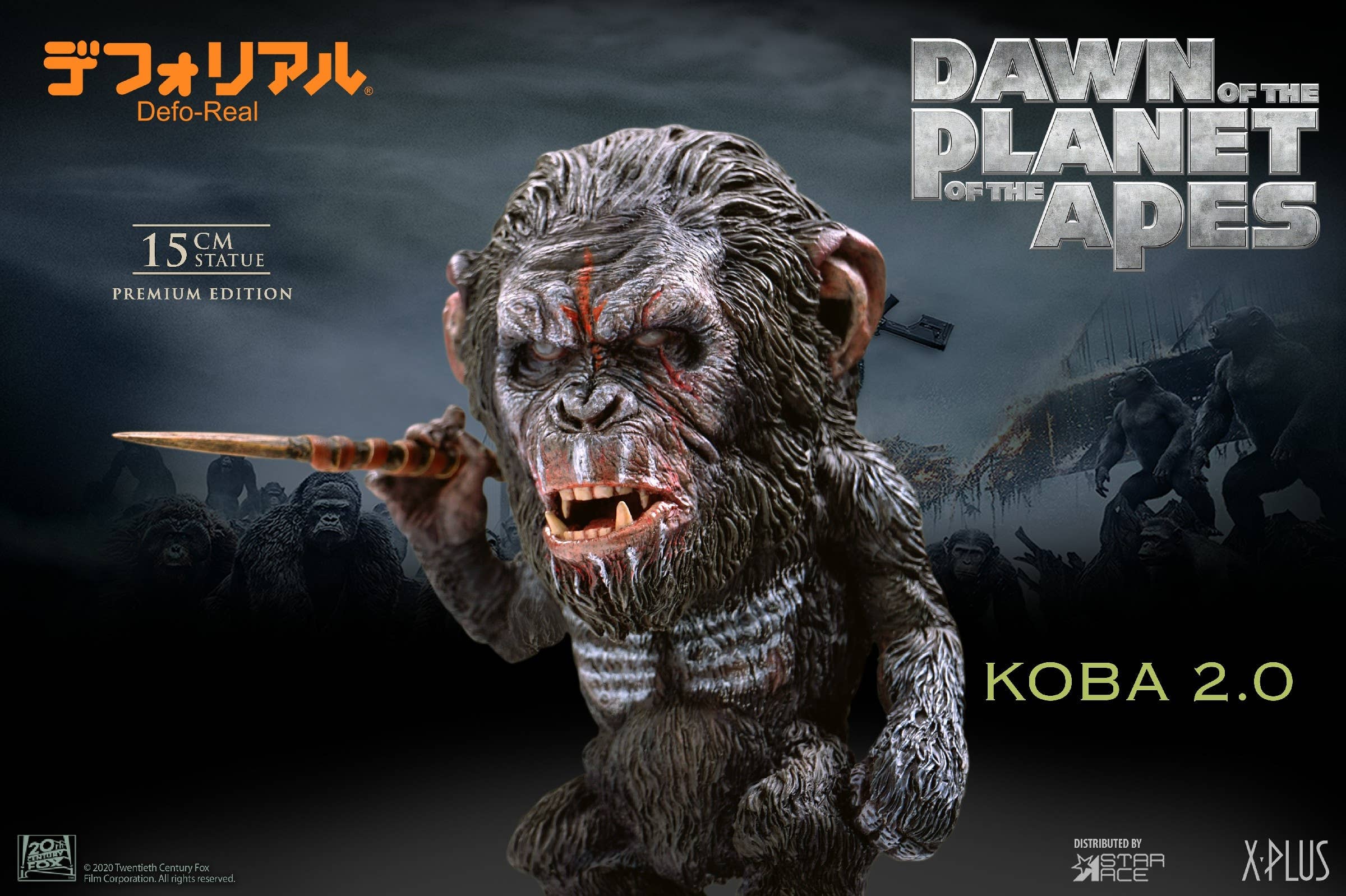 As seen in 2014's "Dawn of the Planet of the Apes," here's Koba! This Defo-Real figure of the heavily scarred bonobo hoists a spear in one hand, with stripes of war paint across his chest. Sculpted in great detail, he's a compact 15cm tall -- order yours today!