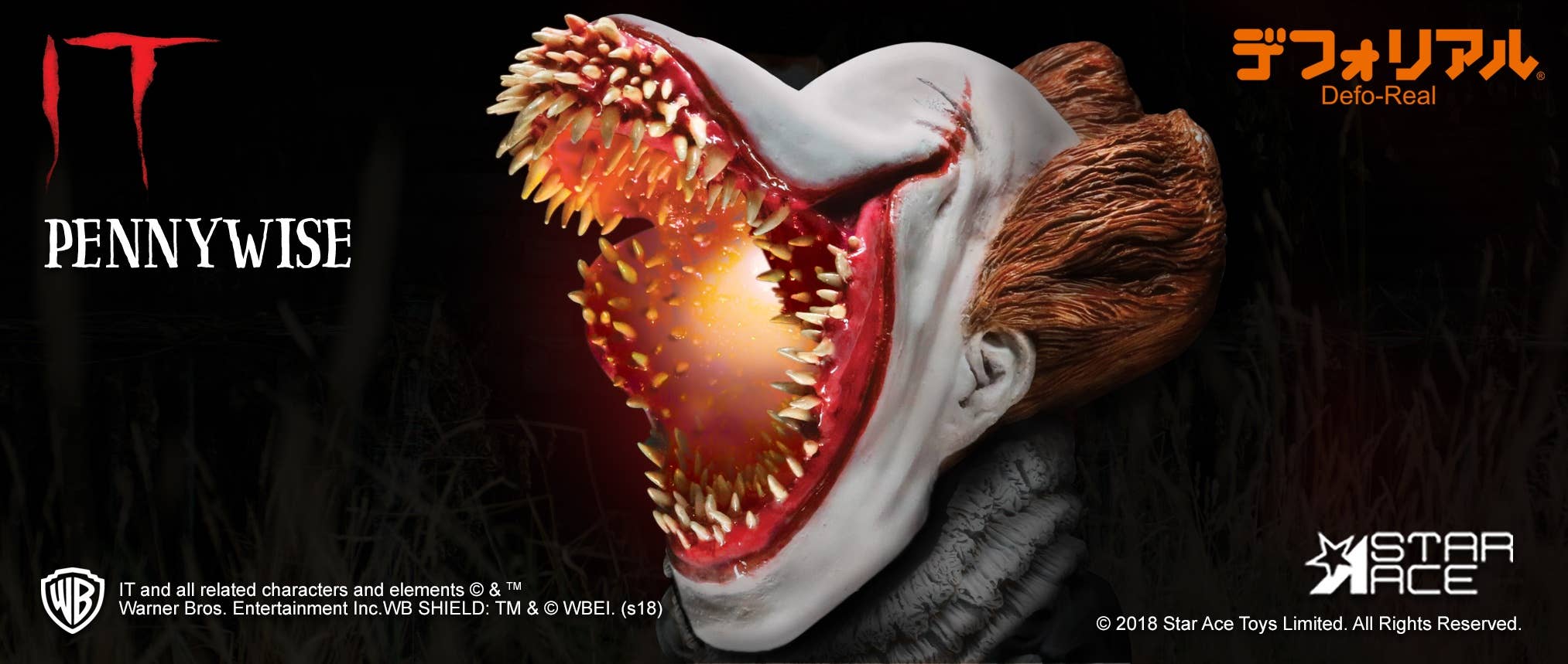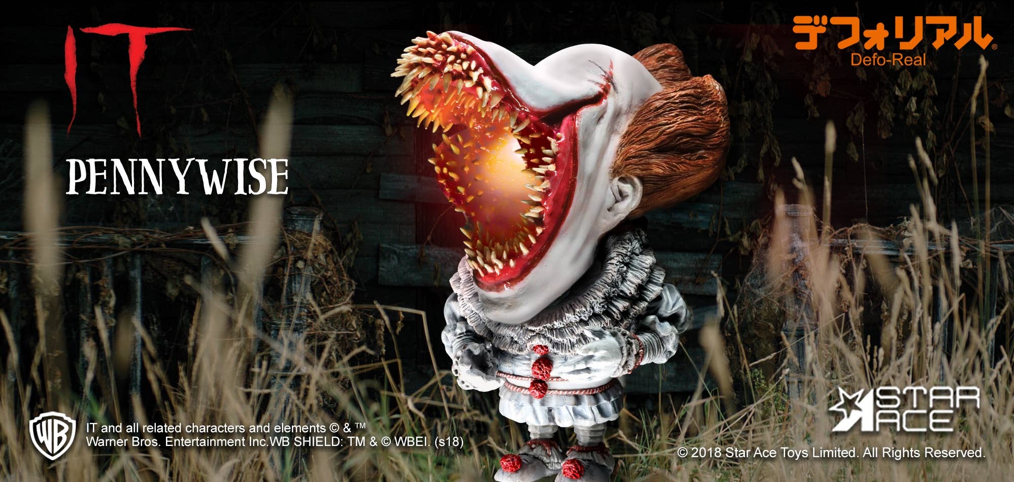 Pennywise, the creepy clown from 2017's "It," joins the Defo-Real super-deformed-style figure lineup from Star Ace Toys! In this version, he's deployed his freaky inner jaws to attack Beverly, and an eerie orange light has been added for extra spookiness! Get him for your own collection today, and don't miss out on the regular and scary versions too!