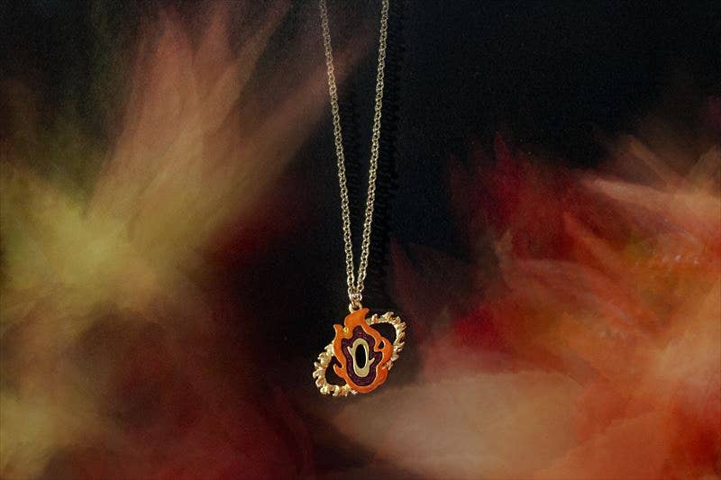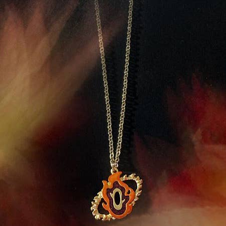 This handcrafted necklace representing Kyojuro Rengoku from "Demon Slayer: Kimetsu no Yaiba" is an elegant accessory that you'll be proud to wear! The included chain is about 50cm long. Order yours today!