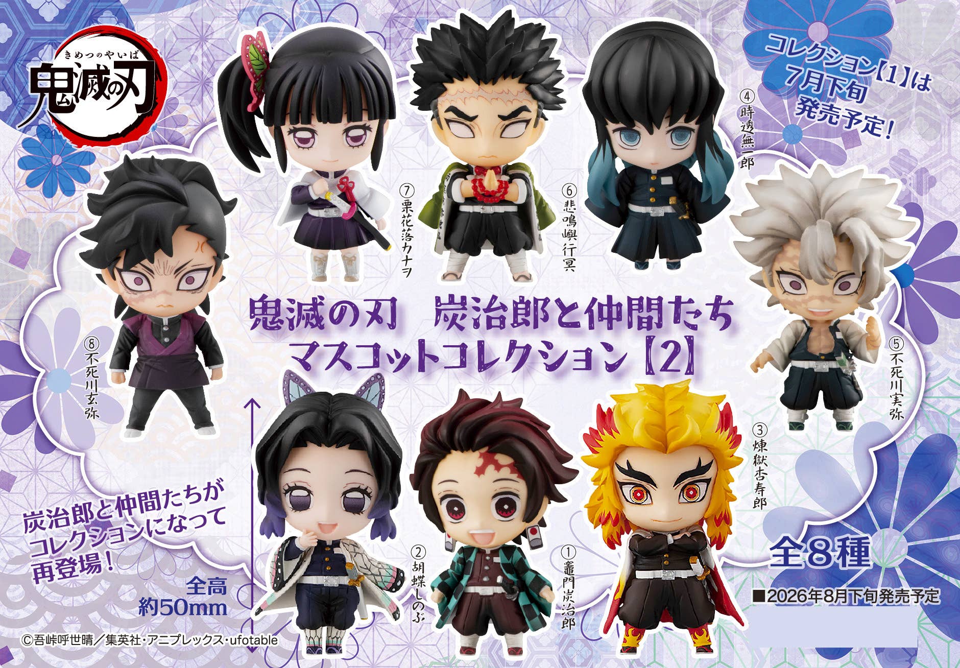 Tanjiro and friends from the TV anime "Demon Slayer: Kimetsu no Yaiba" are now an adorable lineup of collectible mascots from MegaHouse! Each highly detailed figure comes with its own base, and their compact size means it's easy to display them anywhere. There are eight different characters to collect and trade, randomly packed in boxes of eight. Place your order today!